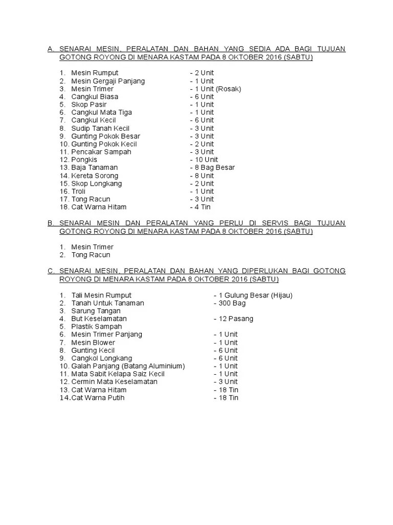 Senarai Peralatan Gotong Royong - Doc 46131712 Kertas Kerja Gotong Royong 2 New Saza Akalili Academia Edu